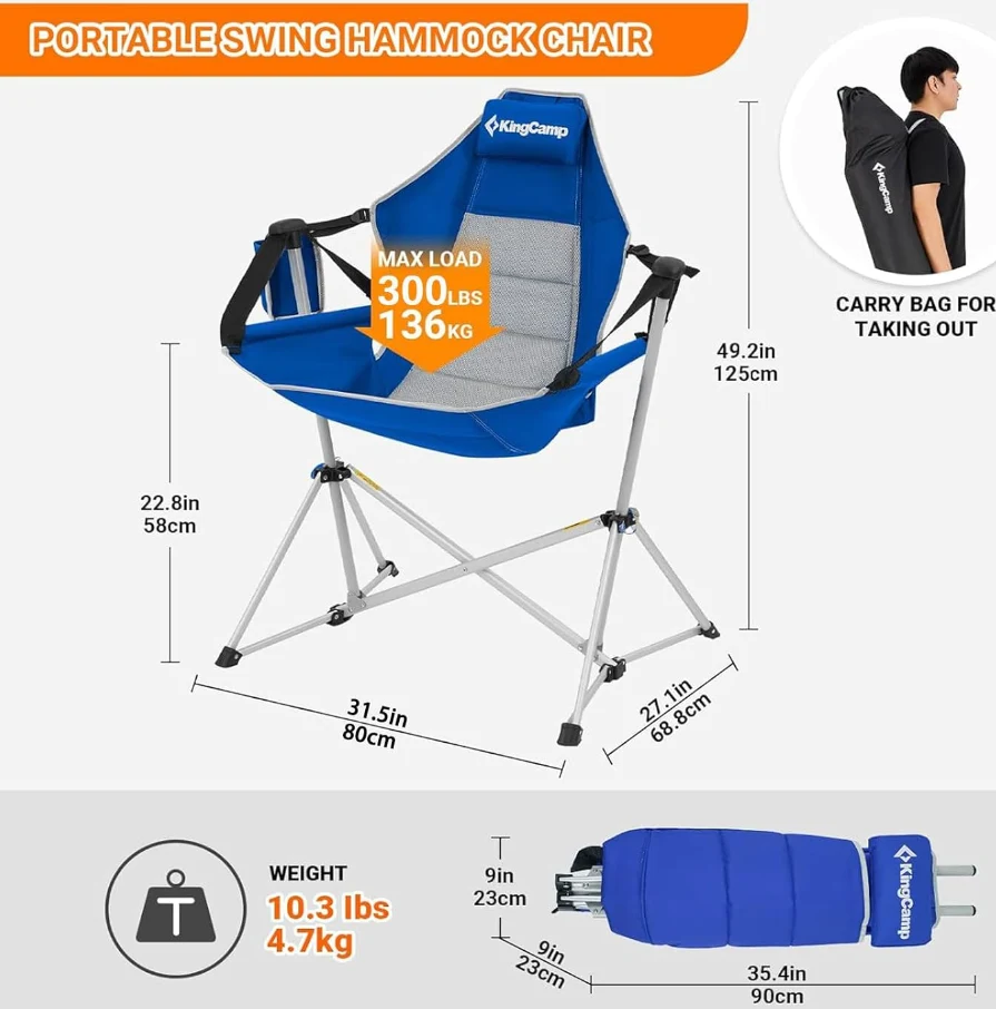 Ghế cắm trại di động có thể điều chỉnh, bạn có thể tự do ngồi hoặc ngả. Điều chỉnh dây đeo, bạn có thể tìm thấy góc lưng hoàn hảo. Ghế cắm trại đu đưa cho phép bạn lắc lư trong tự nhiên mà không cần dây thừng dài.