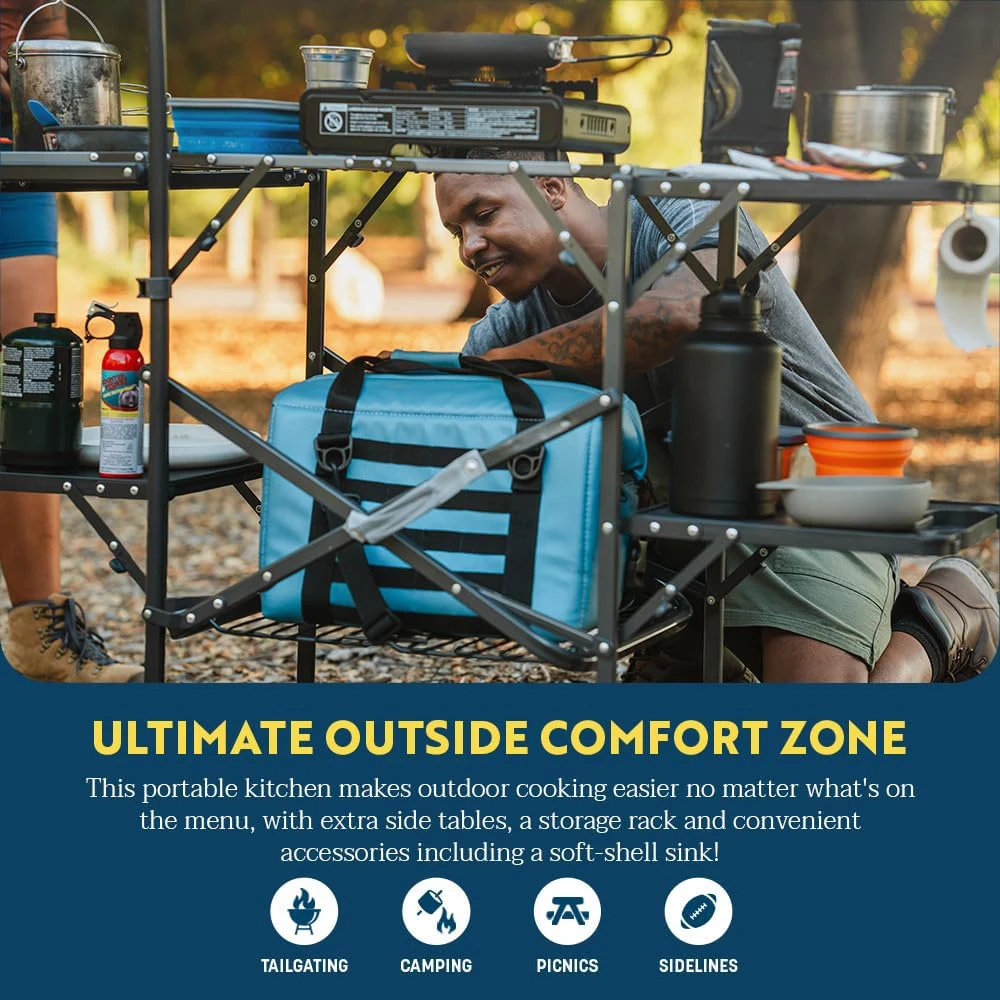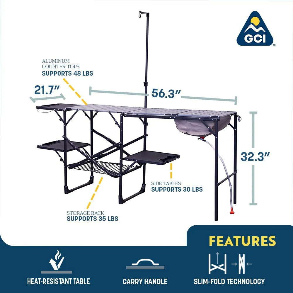 Bàn cắm trại nhôm có thể gập lại di động, làm cho các chuyến đi trại của bạn hoành tráng với trạm nấu ăn chính từ GCI ngoài trời. Nhà bếp di động này được đóng gói với các tính năng (bao gồm cả bồn rửa có vỏ mềm!), Làm cho nó trở thành sự bổ sung hoàn hảo cho các yếu tố cần thiết hoặc cắm trại của bạn.