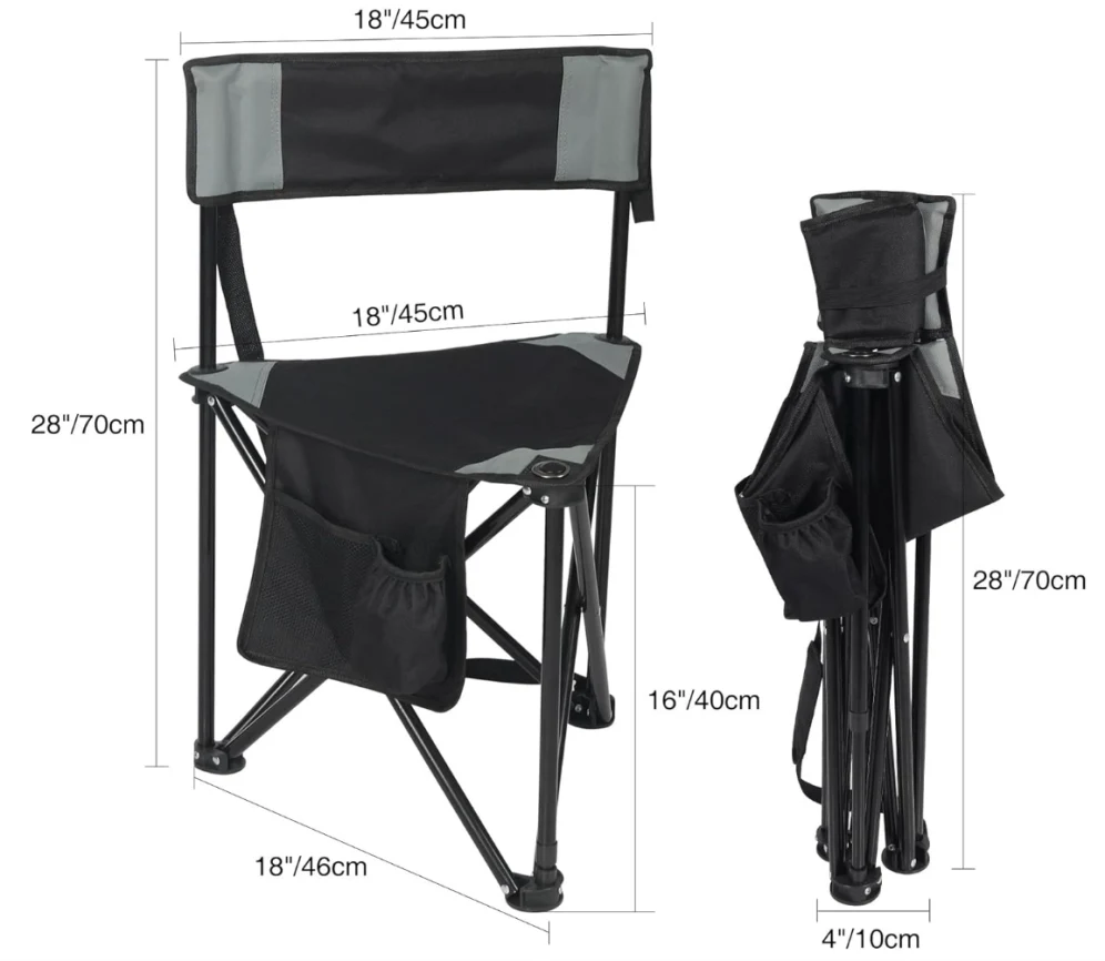 Ghế ba chân có thể gập lại, ghế ba chân gấp di động được thiết kế với một túi phụ, bao gồm một giá đỡ cốc và túi lưu trữ, thuận tiện hơn để bạn đặt các mặt hàng cá nhân bất cứ lúc nào, như thiết bị di động. điện thoại hoặc đồ uống.