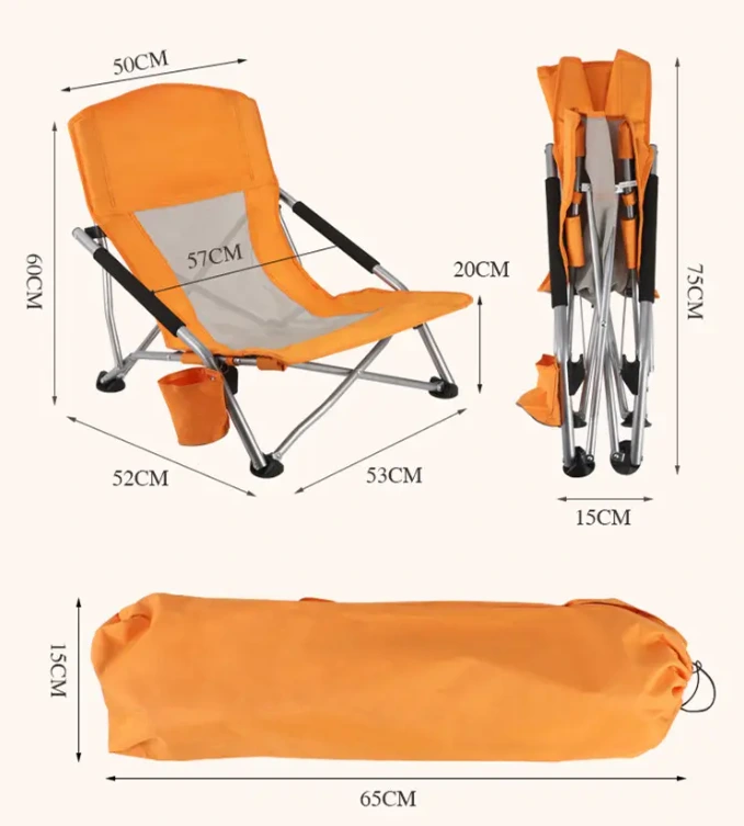 Folding Beach Set, Ghế bãi biển thấp cho người lớn Ghế Sand Ghế cầm tay với giá đỡ cốc & Túi mang. Có đệm cánh tay trên cánh tay kim loại để bạn có thể nghỉ ngơi thoải mái.