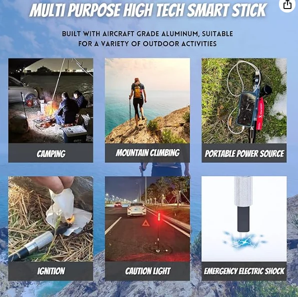 LED Light Trekking Cực.Premium chất lượng trekking đa năng để đi bộ đường dài, gậy đi bộ sinh tồn và gậy tự phòng thủ có thể thu gọn cho bất kỳ hoạt động ngoài trời nguy hiểm nào.
