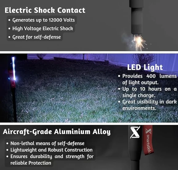 Hai chế độ có sẵn trên LED: ánh sáng trắng hoàn hảo để cắm trại và đèn flash màu đỏ/xanh cho các tình huống khẩn cấp, làm cho nó trở thành một công cụ hiệu quả để tự vệ ban đêm.