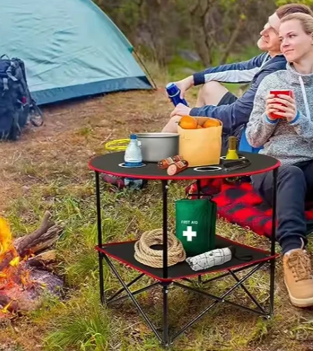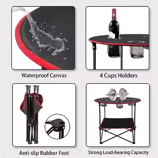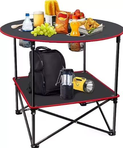 Bàn ăn ngoài trời. Bàn vải vuông có thể gập lại không chỉ có thể được sử dụng trong nhà mà còn để cắm trại, câu cá, đi bộ đường dài, bãi biển, dã ngoại, BBQ, Cooking.zhejiang Jiayu Products Co. , chìa khóa, vv, giúp ăn vặt trong các hoạt động ngoài trời dễ dàng và sạch sẽ hơn. Ở cấp cao nhất của bảng, có một tầng khác để thêm không gian để giữ thức ăn.