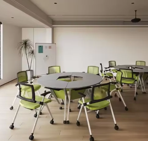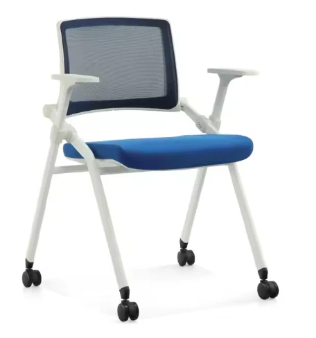Ghế gấp kim loại đệm, ghế văn phòng có thể gập lại với bánh xe PU và trượt tay vịn-Vòng tay-Bouncing Bouncing, Ghế phòng hội nghị có thể xếp chồng lên nhau
