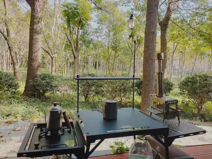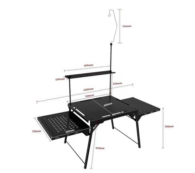 Bàn cắm trại bằng nhôm gấp di động, nền tảng bàn ăn bao gồm các bộ phận trên, giữa và dưới, với không gian đủ để lưu trữ tất cả các loại đồ ăn, thực phẩm và gia vị.