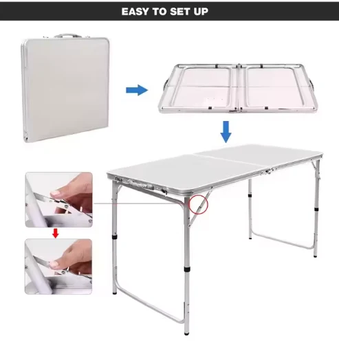 Bàn nhôm gấp di động, có các mục đích sử dụng đa chức năng, cả trong nhà và ngoài trời, bao gồm bàn ăn ngoài trời, bàn bãi biển và bàn bếp cắm trại, được sử dụng để cắm trại, bãi biển, du lịch, các sự kiện thể thao, RV bên ngoài và câu cá.