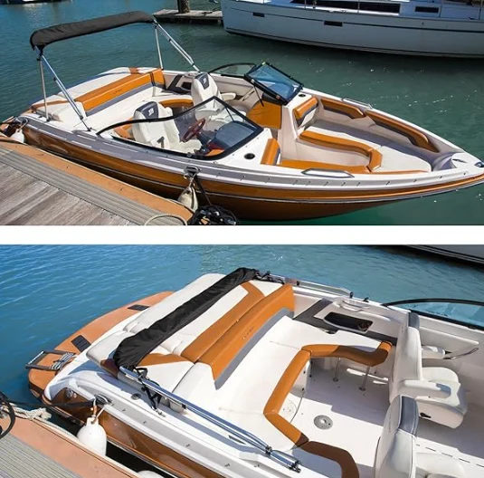 Thuyền không gỉ Bimini Top, được làm bằng vải polyester cấp biển 600D với lớp phủ pu đôi, khởi động lưu trữ của chúng tôi cung cấp sự bảo vệ tốt khỏi ánh sáng mặt trời, nước biển, mưa và bụi.